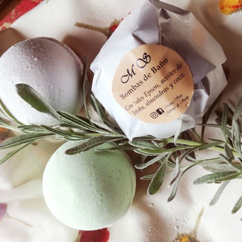 BOMBAS EFERVESCENTES: Las bombas de baño están elaboradas con sales epson, estas son portadoras de gran cantidad de magnesio, favoreciendo los huesos y la circulación sanguínea .Los aceites esenciales de tilo y té verde se van a encargar de que tu baño de inmersión sea relajante, y el aceite de coco , jojoba ,almendras y olivo dejaran tu piel suave y humectada por varias horas.